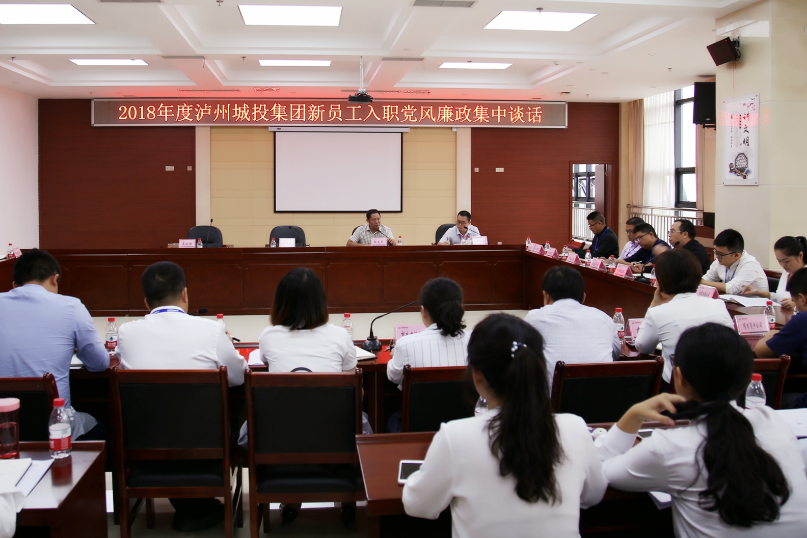 9月19日,瀘州城投集團開展2018年度新員工入職黨風廉政集中談話。瀘州城投集團在家班子成員、部門負責人、子公司相關(guān)高管以及全體新員工參加了會議。