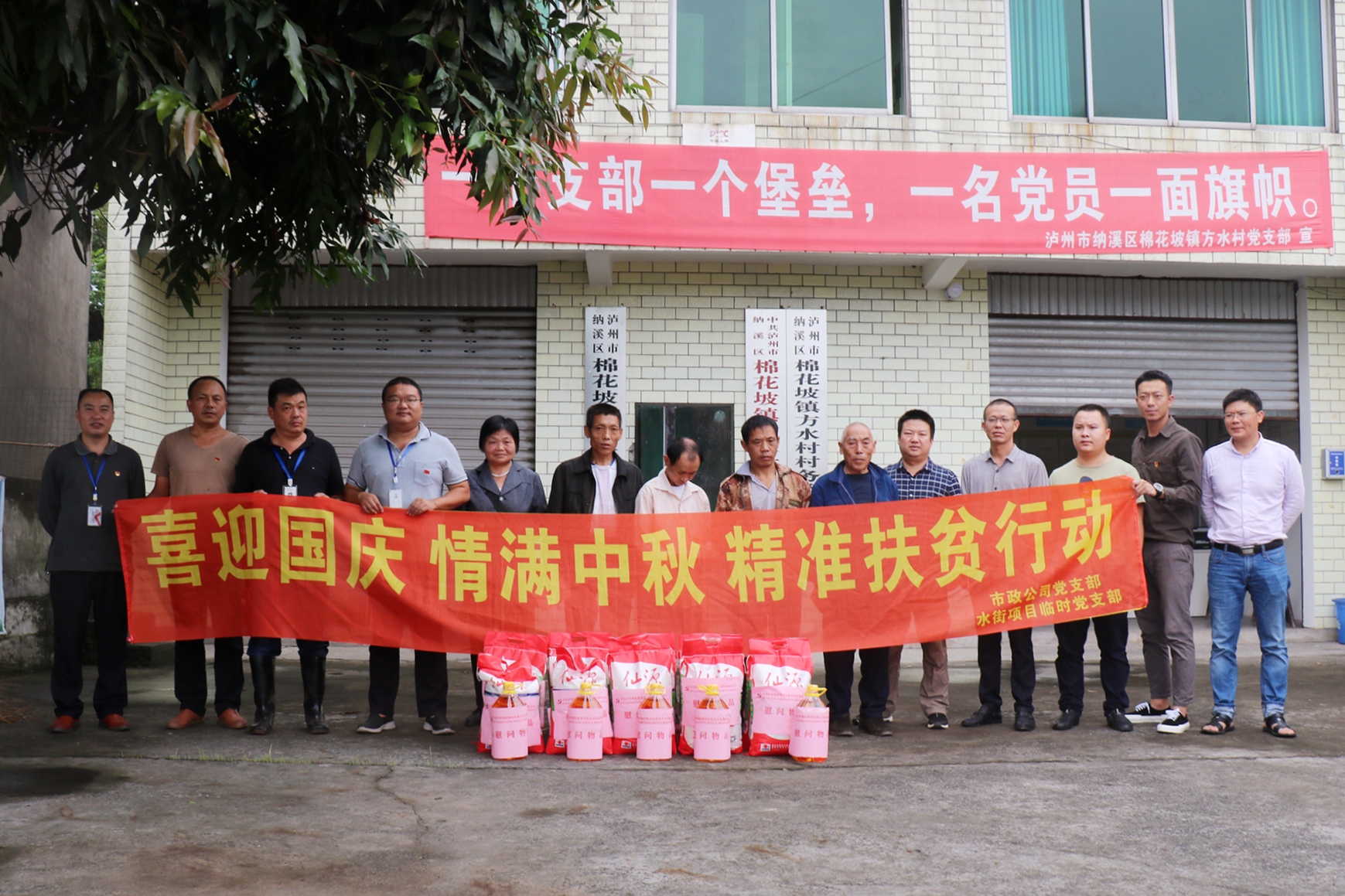 9月21日,在雙節(jié)來臨之際,瀘州城投集團市政公司黨員先鋒隊—長濕公園商業(yè)水街項目臨時黨支部聯合納溪區(qū)棉花坡鎮(zhèn)黨委組織開展了“喜迎國慶情滿中秋精準扶貧行動”,為棉花坡鎮(zhèn)方水村、柑灣村、高洞村、伏龍村、竹林村12戶貧困戶送上節(jié)日慰問和祝福,幫助精準幫扶貧困戶度過一個歡樂祥和的節(jié)日。