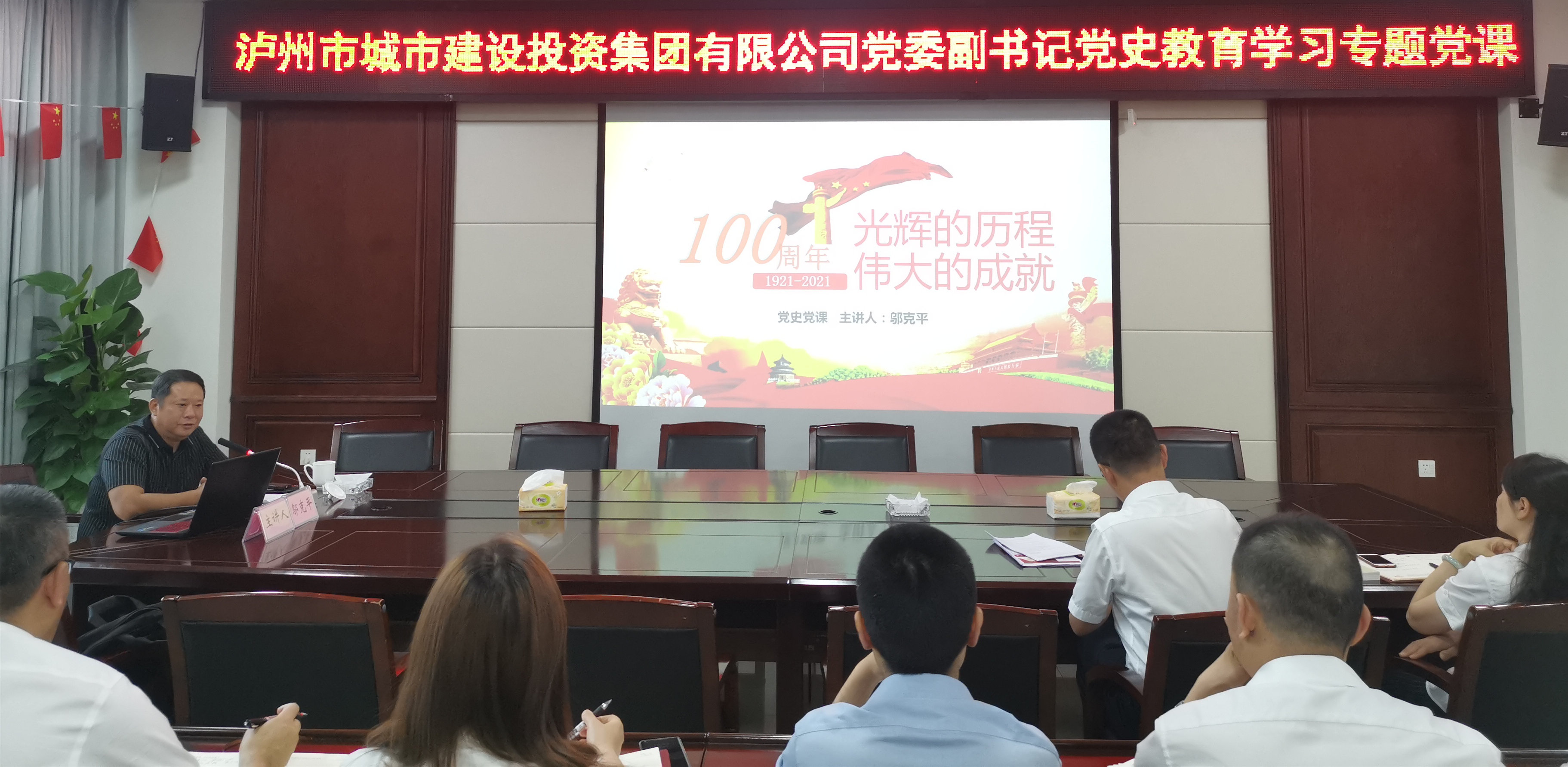 6月25日,瀘州城投集團黨委副書記鄔克平圍繞黨史學習教育,以《100周年——光輝的歷程,偉大的成就》為題,在兩江新城公司開展黨史學習教育專題黨課。