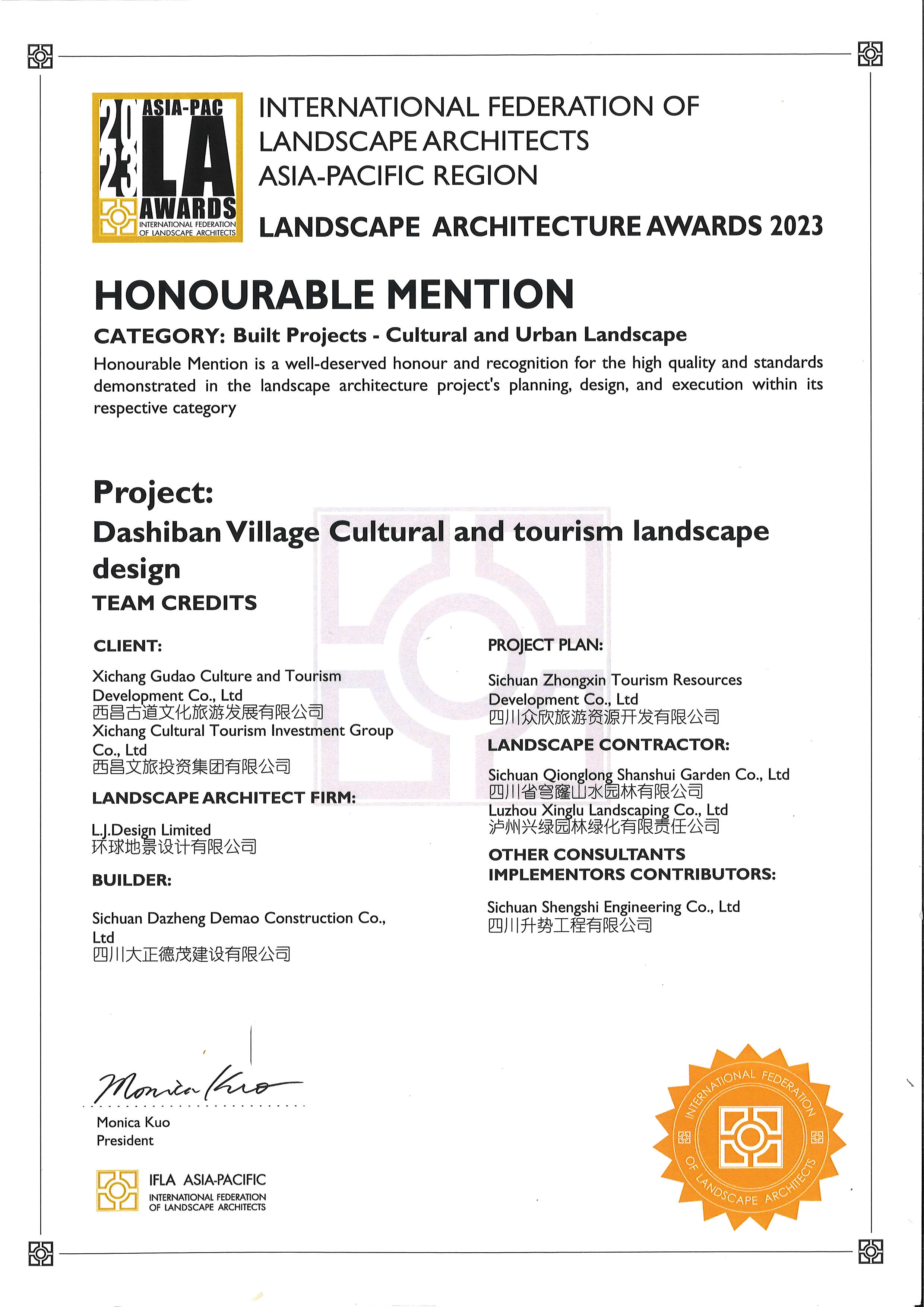 近日,全球風景園林最高獎之一——國際風景園林師聯(lián)合會(IFLA)正式公布2023年亞太區(qū)風景園林國際大獎(LANDSCAPE ARCHITECTURE AWARDS 2023)評選結(jié)果,瀘州城投集團興綠園林公司負責實施的園林景觀部分設(shè)計和施工的《西昌市海南街道大石板鄉(xiāng)村振興二期基礎(chǔ)設(shè)施建設(shè)項目》從全球眾多實力參賽作品中脫穎而出,斬獲2023IFLA景觀建筑榮譽獎。
