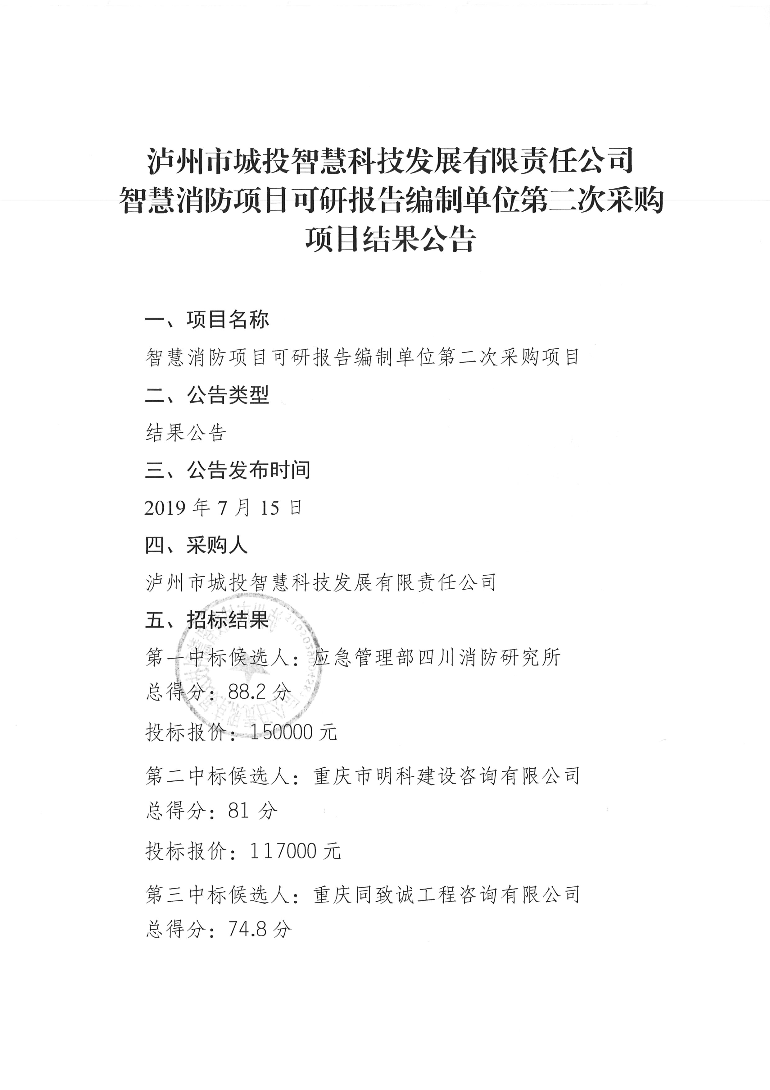 智慧消防項(xiàng)目可研報(bào)告編制單位第二次采購(gòu)項(xiàng)目結(jié)果公告