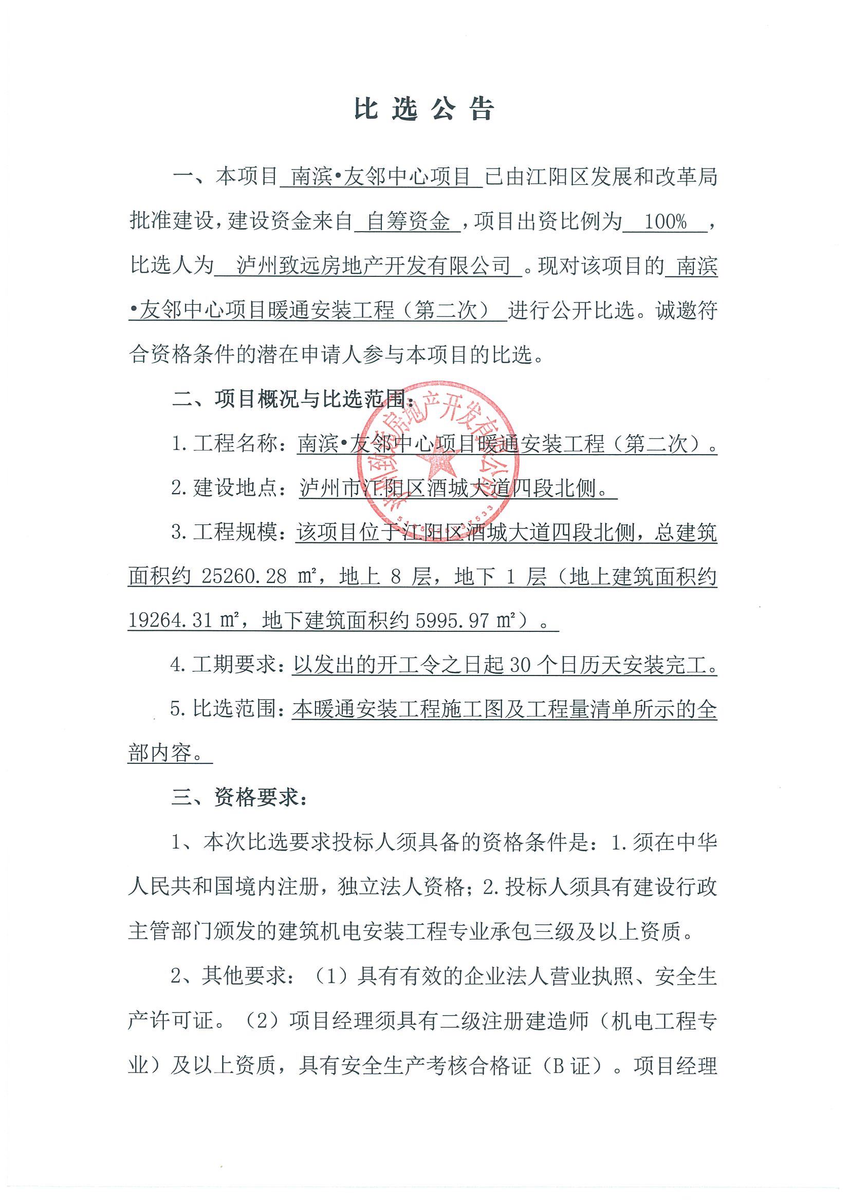 南濱友鄰中心項(xiàng)目暖通安裝工程比選公告(第二次)